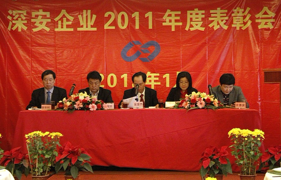 2012年1月18日,深安企業(yè)2011年度總結表彰會隆重舉行,公司領導和員工代表歡聚一堂,表彰先進、總結經驗,共商公司2012年發(fā)展大計。公司董事長朱小萍做經營總結講話,各分管領導就各自分管的工作先后講話,各項目部經理、各部門經理分別做匯報總結發(fā)言。會議對一年來為深安企業(yè)發(fā)展做出優(yōu)異成績的2個“先進項目部”、2個“先進部門”、21名“先進個人”、2個“最佳進步獎”以及獲“最佳敬業(yè)獎”的7位同志進行表彰,公司要求全體員工以先進典型為榜樣,凝心聚力、開拓創(chuàng)新、求真務實,在全公司掀起“學習先進、爭當模范,以實際行動開創(chuàng)公司發(fā)展新局面”的新高潮。